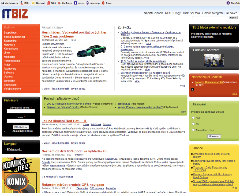 Pro správu vlastního reklamního prostoru používali systém Kvantum. Nebyl úplně vyhovující, a tak ho brzo vystřídalo řešení od Internet Billboardu. Do něj jsem nahrával mnou vyrobené animované bannery, které propagovalo aktuální vydání jednotlivých časopisů a také předplatné. Vydavatelství mělo jako hlavní stránku prezentaci ve Flashi a nebylo možné odkazovat na konkrétní obsah. Proto jsem to obcházel vytvořením vlastních vstupních stránek (microsite).